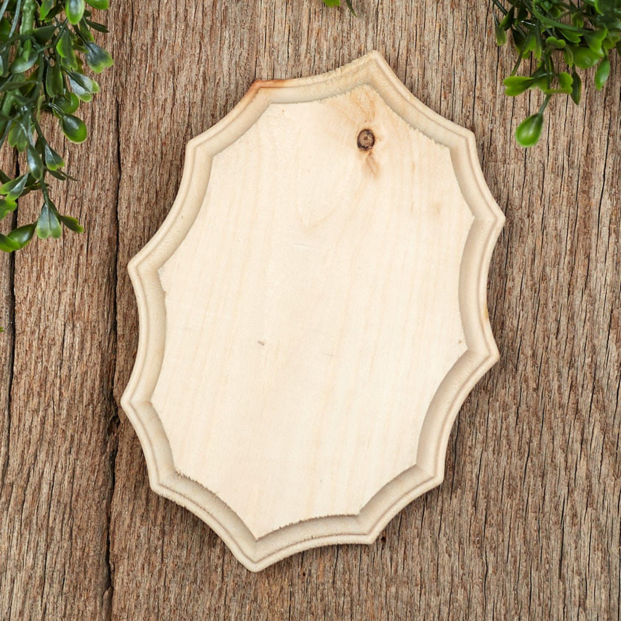This Unfinished Wood Beveled Edge French Oval Plaque is smooth sanded, and ready to be stained, painted, decoupaged, carved, or wood burned.