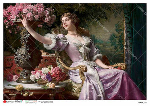 "Artwork 0138": Original painting by artist Władysław Czachórski, Lady in a Lilac Dress with Flowers, 1903