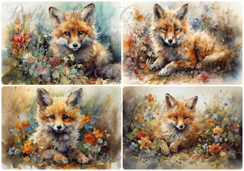 Baby Fox Rice Paper by Reba Rose Creations in size A4.
