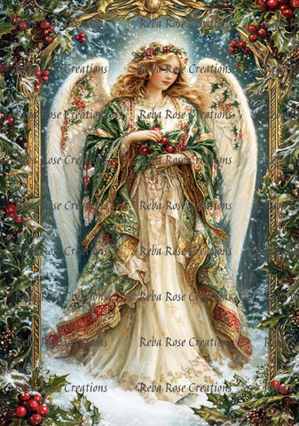Intricate Christmas Angel Rice Paper by Reba Rose Creations in size A4.